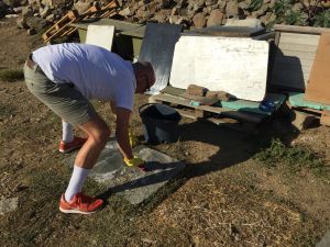 Zu den geplanten Arbeiten gehörte auch das Reinigen einiger Futterplätze, bei der Gelegenheit spendierten wird ein paar weitere Steinplatten und entsorgten dafür alte vergammelte Holzunterlagen, die sich nur schwer reinigen lassen. Schnell wird ein Tagesplan über den Haufen geworfen, z.B. wenn uns zwei streunende Hunde mitten auf der stark befahrenen Strasse entgegen kommen.